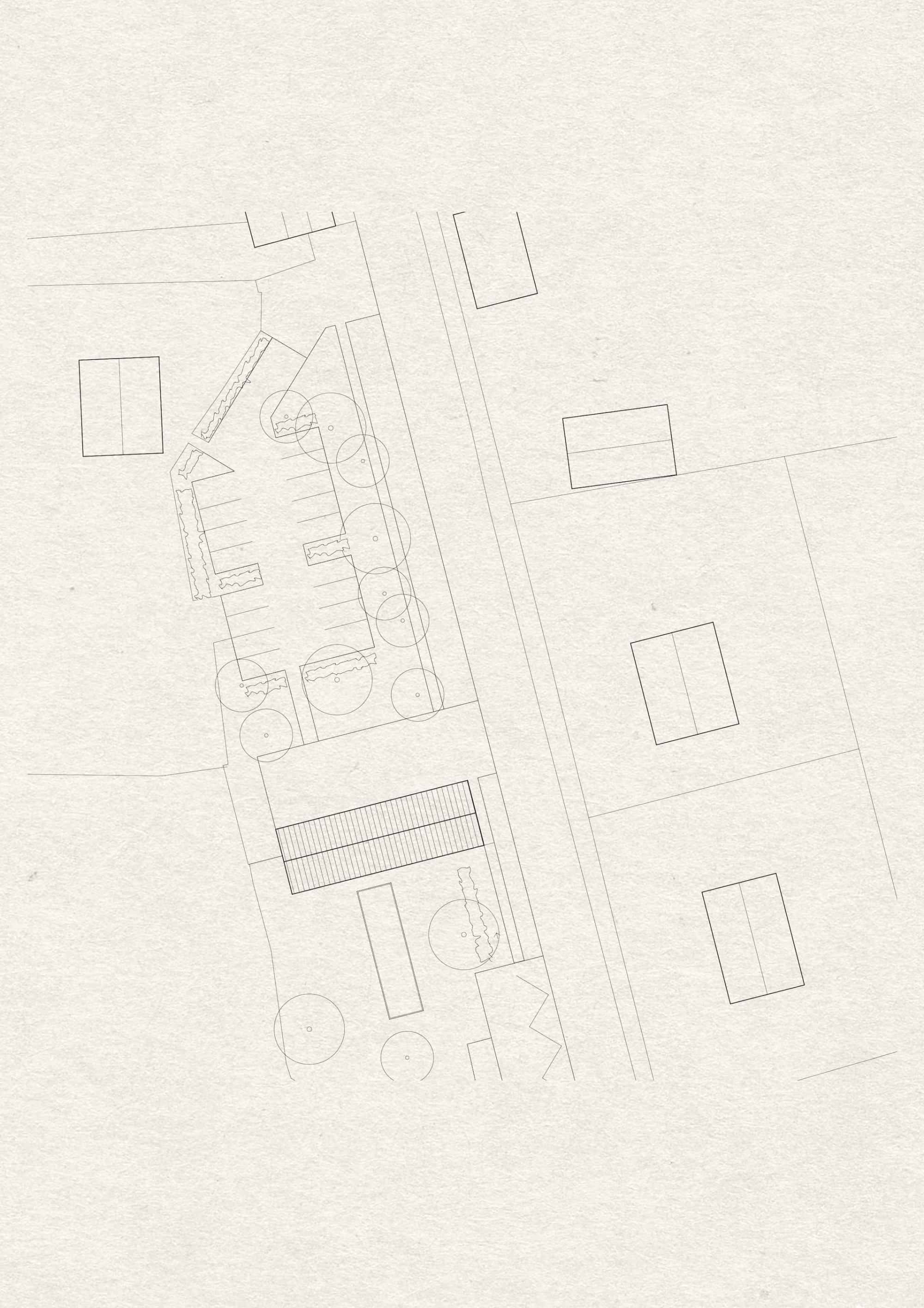Implantée perpendiculairement à la route départementale, sur un axe Nord-Sud, la mairie marque l’arrivée dans le bourg et participe ainsi à son identité. Cette implantation vient qualifier deux zones : au Sud, un jardin d’agrément et son terrain de pétanque, au Nord une placette minérale en stabilisé prolongée par une zone de stationnement soigneusement végétalisée.