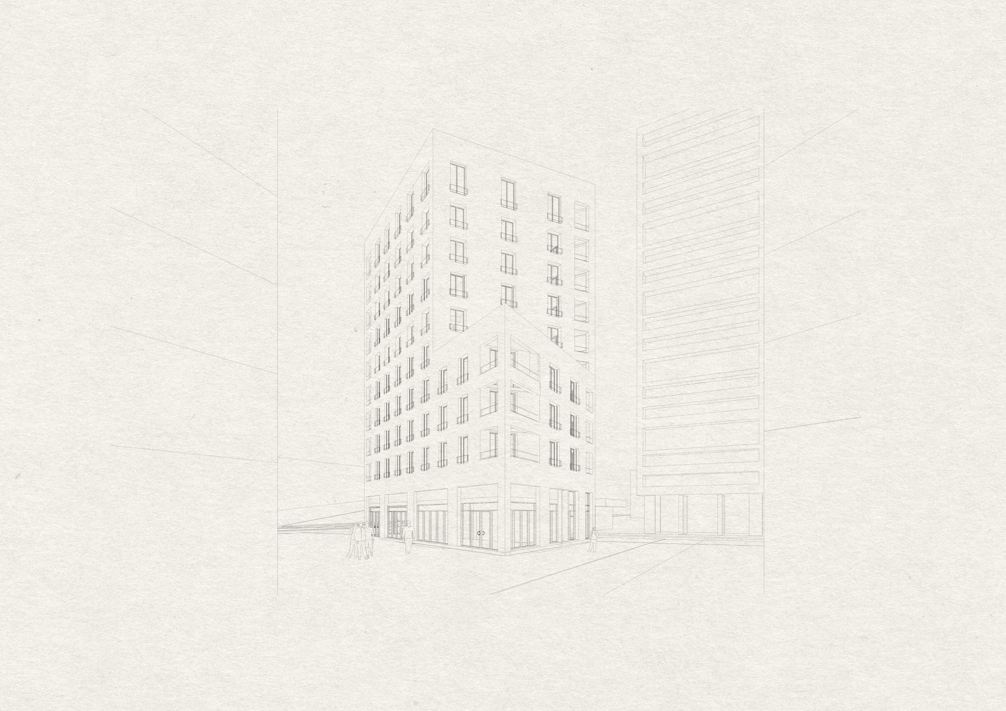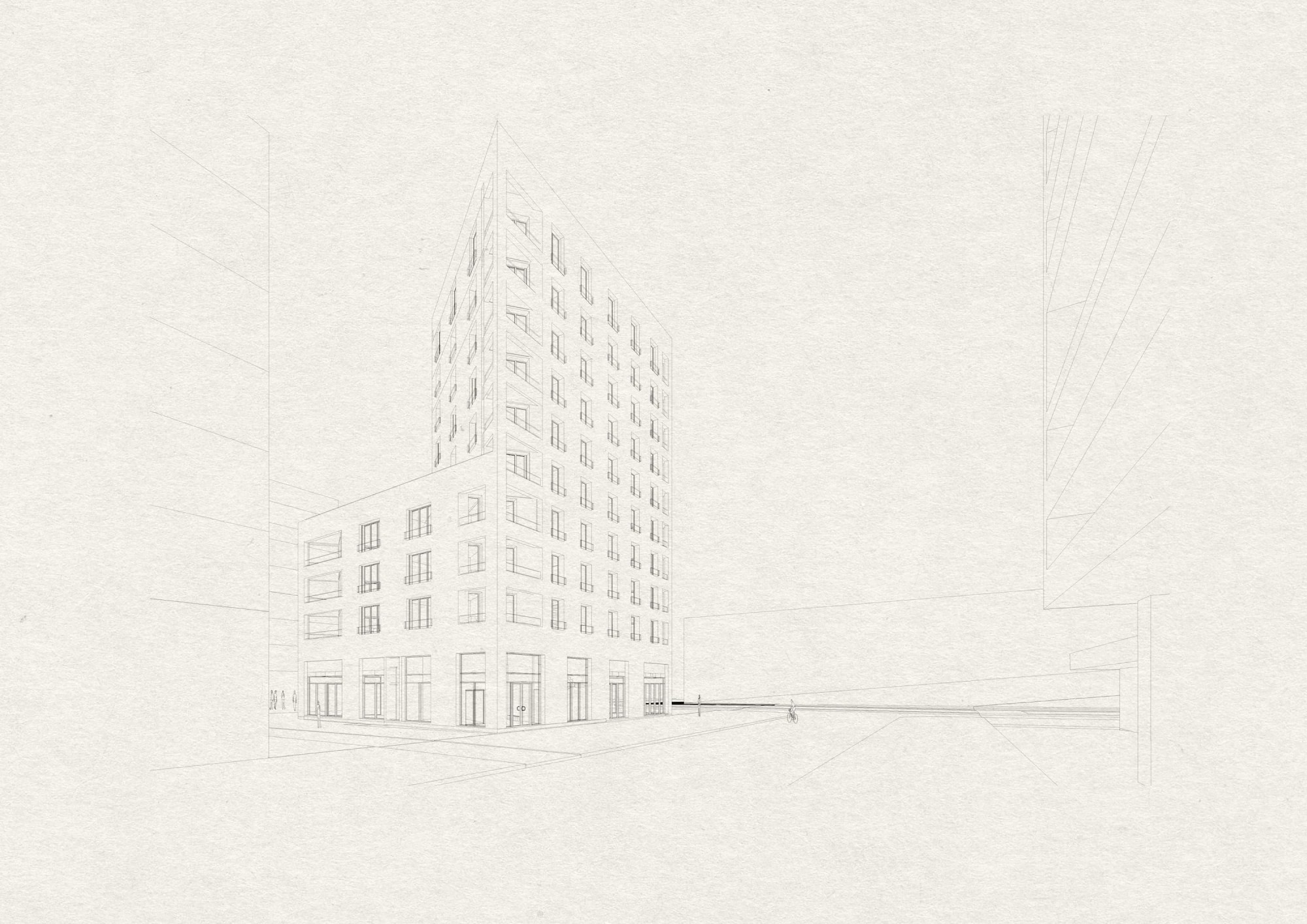 Le projet se compose de deux bâtiments :- Le premier est indépendant, et présente une forme triangulaire. Positionné en proue, il marque un angle et constitue l’entrée Nord-Ouest vers le nouveau quartier.